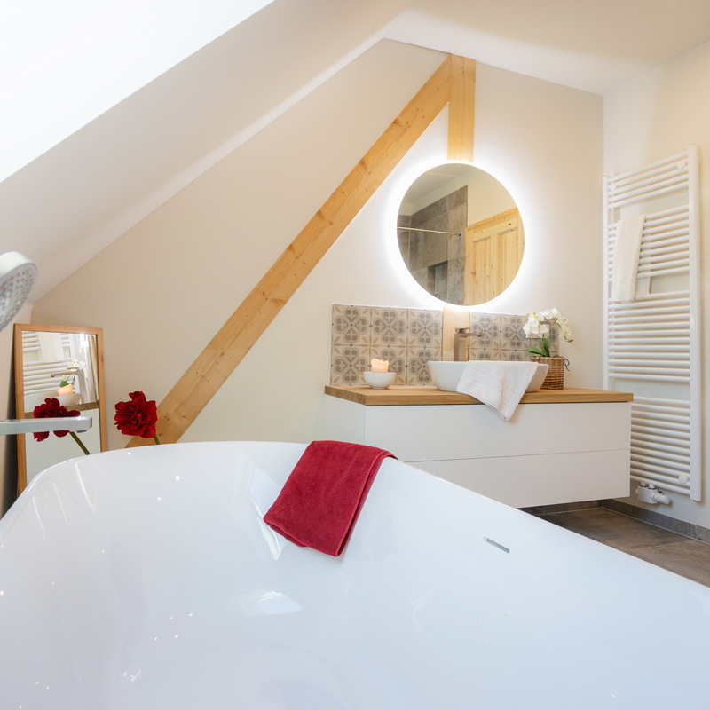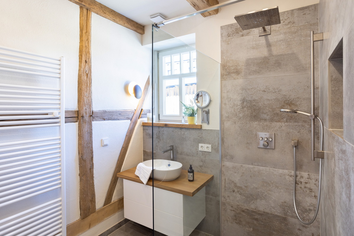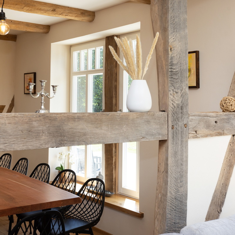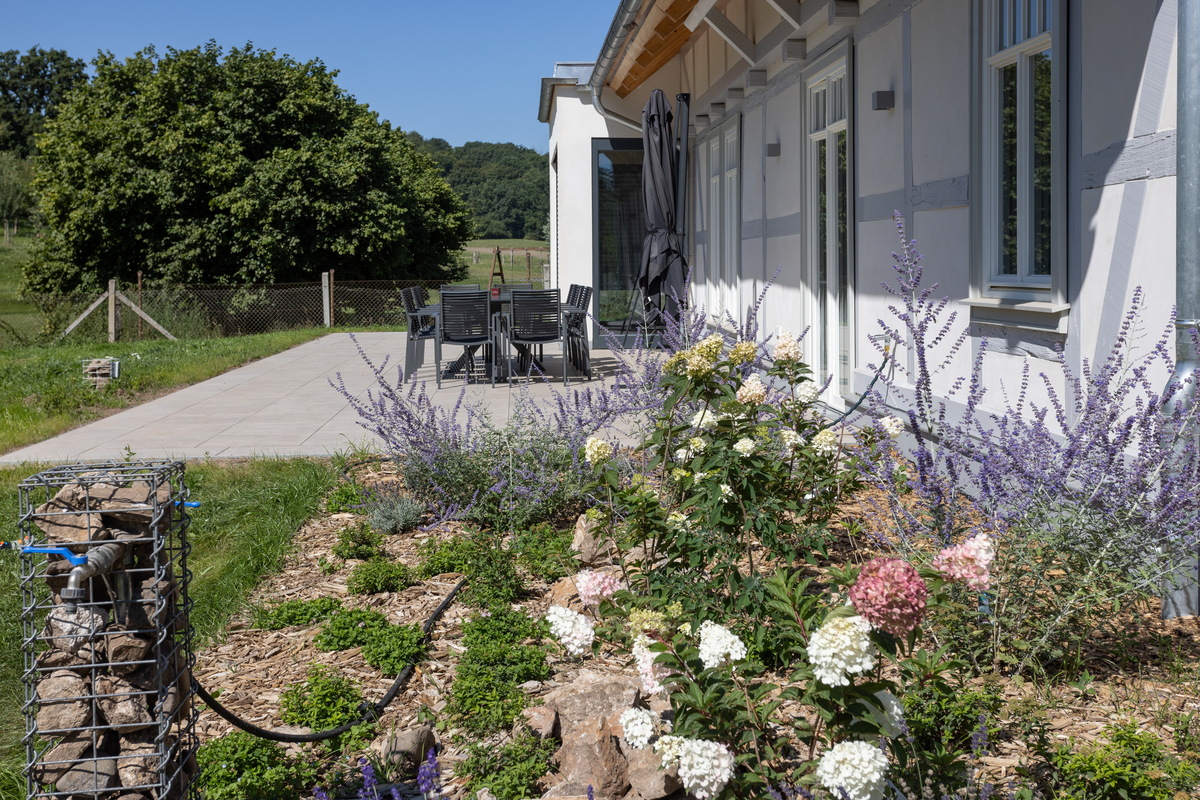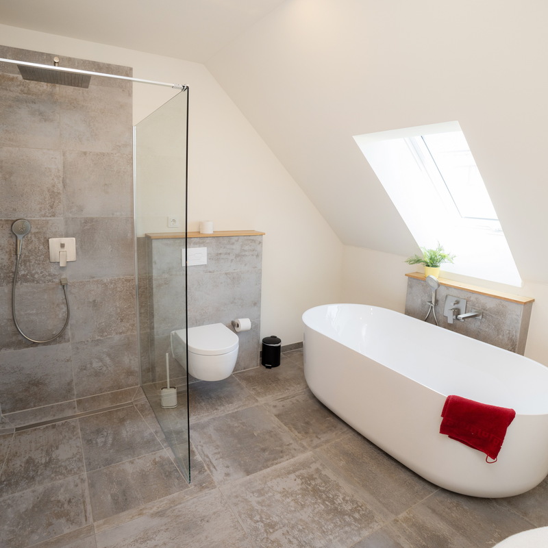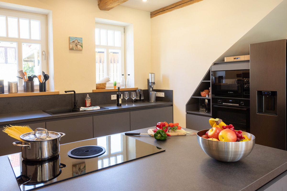 Das großzügige Fachwerkhaus bietet euch alles, was einen gelungenen Aufenthalt ausmacht: 7 individuell eingerichtete Schlafzimmer für bis zu 17 Personen, zwei moderne Badezimmer – eines davon mit freistehender Badewanne , zwei Gäste-WC – sowie ein großes Wohnzimmer mit Sofaecke, Klavier und viel Platz für gesellige Abende. WLAN, TV und modernste nachhaltige Heiztechnik sorgen dafür, dass ihr euch bei jedem Wetter wohlfühlt.